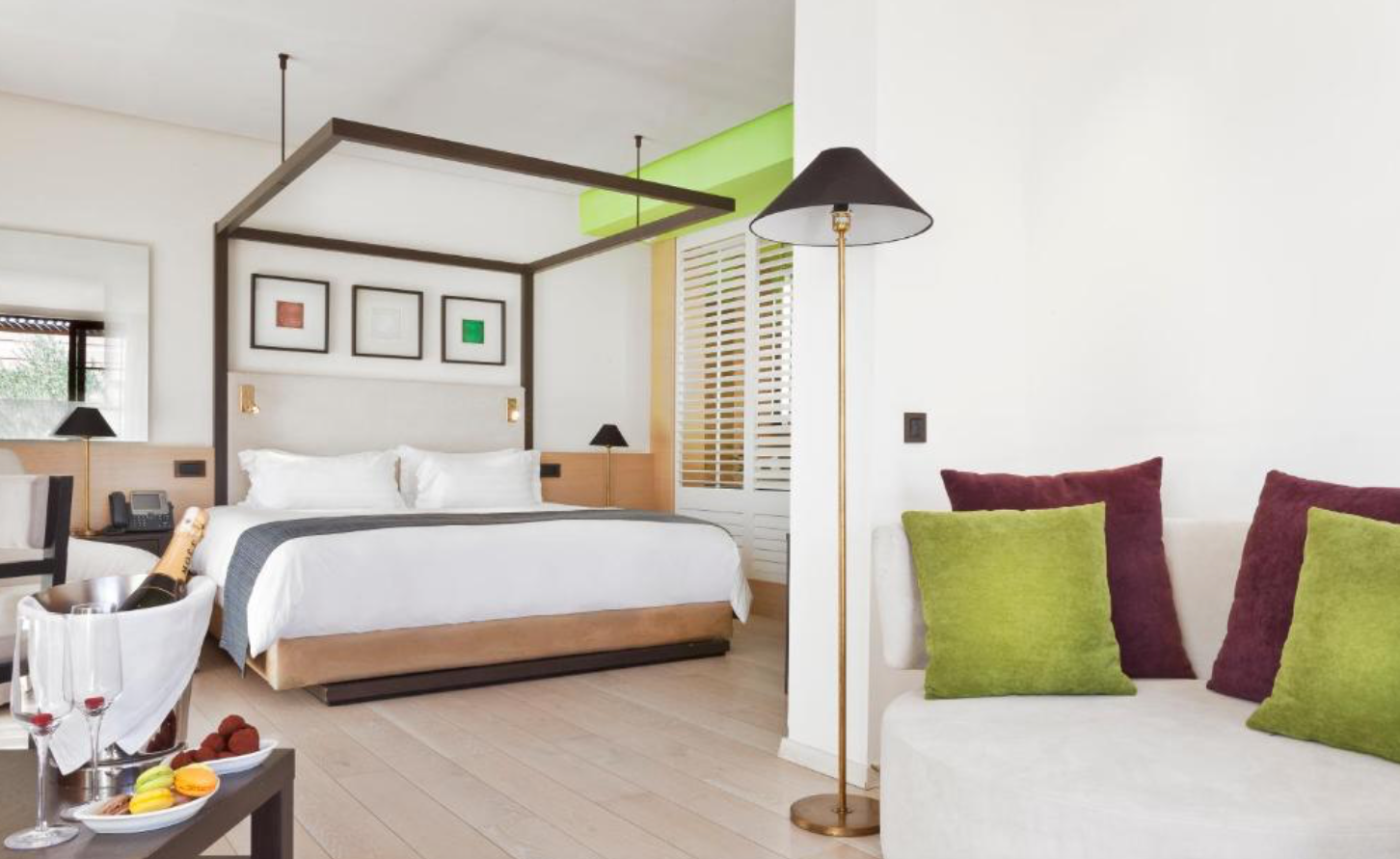 Une modernité pure s’infiltre non sans fierté dans la tradition marocaine jouant avec une décoration audacieuse et des coloris chaleureux. De vertigineuses baies vitrées jonglent avec la délicieuse lumière. Les matériaux sont nobles et les meubles d’un design étonnant. Le personnel s’affaire discrètement. L’apanage des grands. Les chambres sont vastes, esthétiques à souhait. Les salles de bain arborent des airs avant-gardistes. On s’habitue vite à la vue sur la piscine… Très vite.
